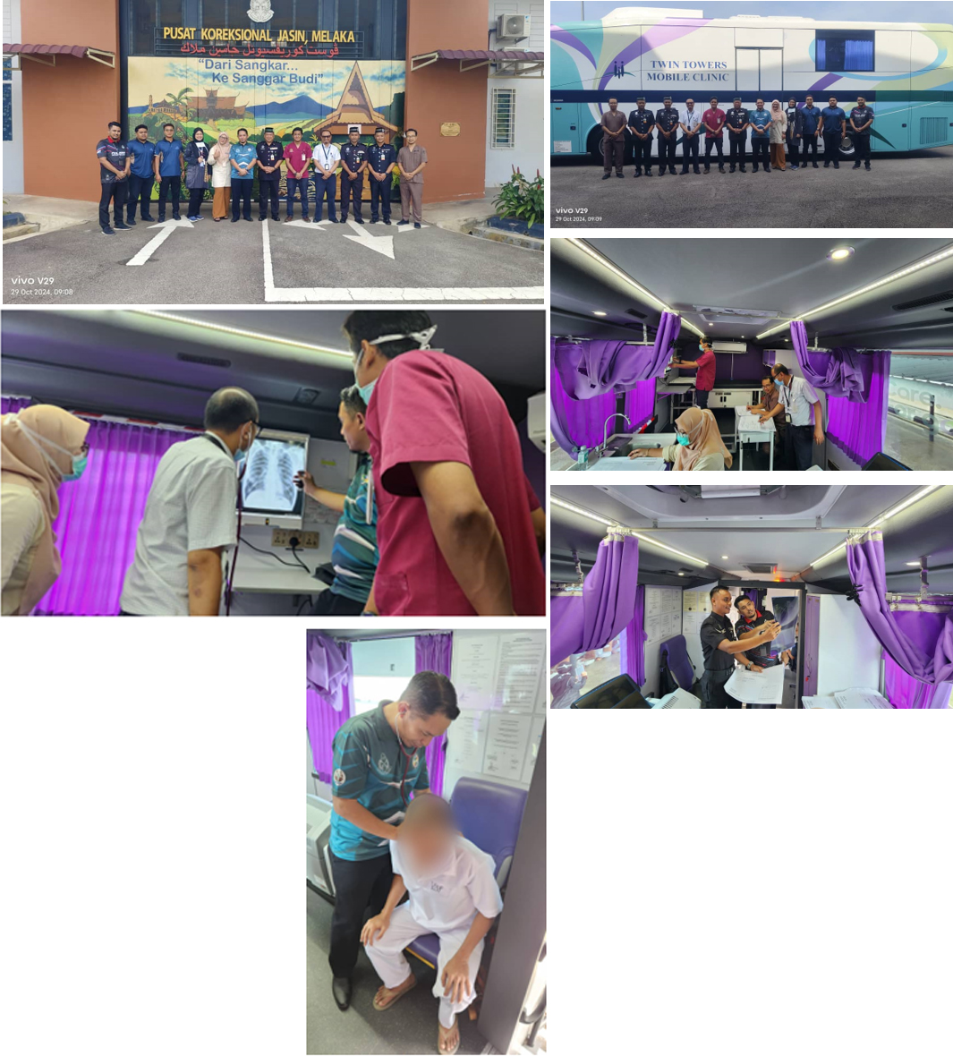 Pada 29 Oktober 2024 (Selasa), telah diadakan program pemeriksan TIBI dan X-Ray kepada Orang Diselia (ODS) di Pusat Koreksional Jasin. Program ini adalah kolaborasi diantara Pegawai Perubatan Pusat Koreksional Jasin dan Jabatan Kesihatan Negeri Melaka. Program ini juga menggunakan khidmat pengimejan X-Ray secara bergerak daripada Twin Tower Medical Centre KLCC Sdn. Bhd. Pihak Jabatan Kesihatan Negeri Melaka telah diketuai oleh Dr. Nurzaimah binti Zainal ( Pakar Perubatan Kesihatan Awam) bersama 4 pegawai perubatan yang lain. Pegawai perubatan tersebut telah disambut oleh PP Mohd Rehan bin Khamis, Timbalan Pengarah Pusat Koreksional Jasin, Dr. Mohd Mahdzan bin Mazelan Pegawai Perubatan Pusat Koreksional Jasin, Encik Muhammad Syafiq bin Mat Ghani, Pegawai Farmasi Pusat Koreksional Jasin dan Encik Muhammad Shukri bin Roslan, Penolong Pegawai Perubatan Pusat Koreksional Jasin. Pihak pengurusan Pusat Koreksional Jasin amat menghargai jasa baik Jabatan Kesihatan Negeri Melaka untuk memberi perkhidmatan kesihatan kepada ODS.