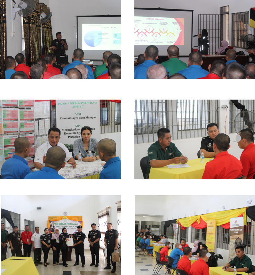 Pada 21 November 2024 (Khamis), Pusat Koreksional Bintulu/ PPK/ PPA telah menganjurkan Program Minggu Kerjaya dan Keusahawanan Tahun 2024. Antara agensi yang terlibat dalam program ini ialah Tekun Nasional Bintulu, Pejabat MARA Daerah Bintulu, Institut Kemahiran MARA (IKM) Bintulu, Pejabat Tenaga Kerja Bintulu, Jabatan Pertanian Bintulu, Farley Mini Market Bintulu dan Unit Kebajikan Institusi. Program telah dimulakan dengan dengan ceramah berkaitan CHCDC yang telah disampaikan oleh KIP James Endah anak Duan, Ketua Unit Latihan Institusi dan Ceramah: Kesedaran Pentingnya Pekerjaan yang telah disampaikan oleh Encik Mohd Awissolqani bin Abdul Razak, Pegawai Psikologi Institusi, disusuli taklimat ringkas serta pameran kerjaya oleh agensi yang terlibat. Objektif penganjuran program ini adalah sebagai persediaan kepada prospek sebelum dibebaskan agar dapat merancang dan memilih kerjaya yang bersesuaian serta dapat mengenal pasti sumber-sumber yang dapat membantu mereka kelak. Program telah dihadiri seramai 50 orang prospek Fasa 2 dan Fasa 3 dan turut dimeriahkan dengan kehadiran PKP Zakaria bin Mat Jusoh, Pengarah Pusat Koreksional Bintulu/ PPK/ PPA. Program diakhiri dengan sesi penyampaian cenderamata dan bergambar.