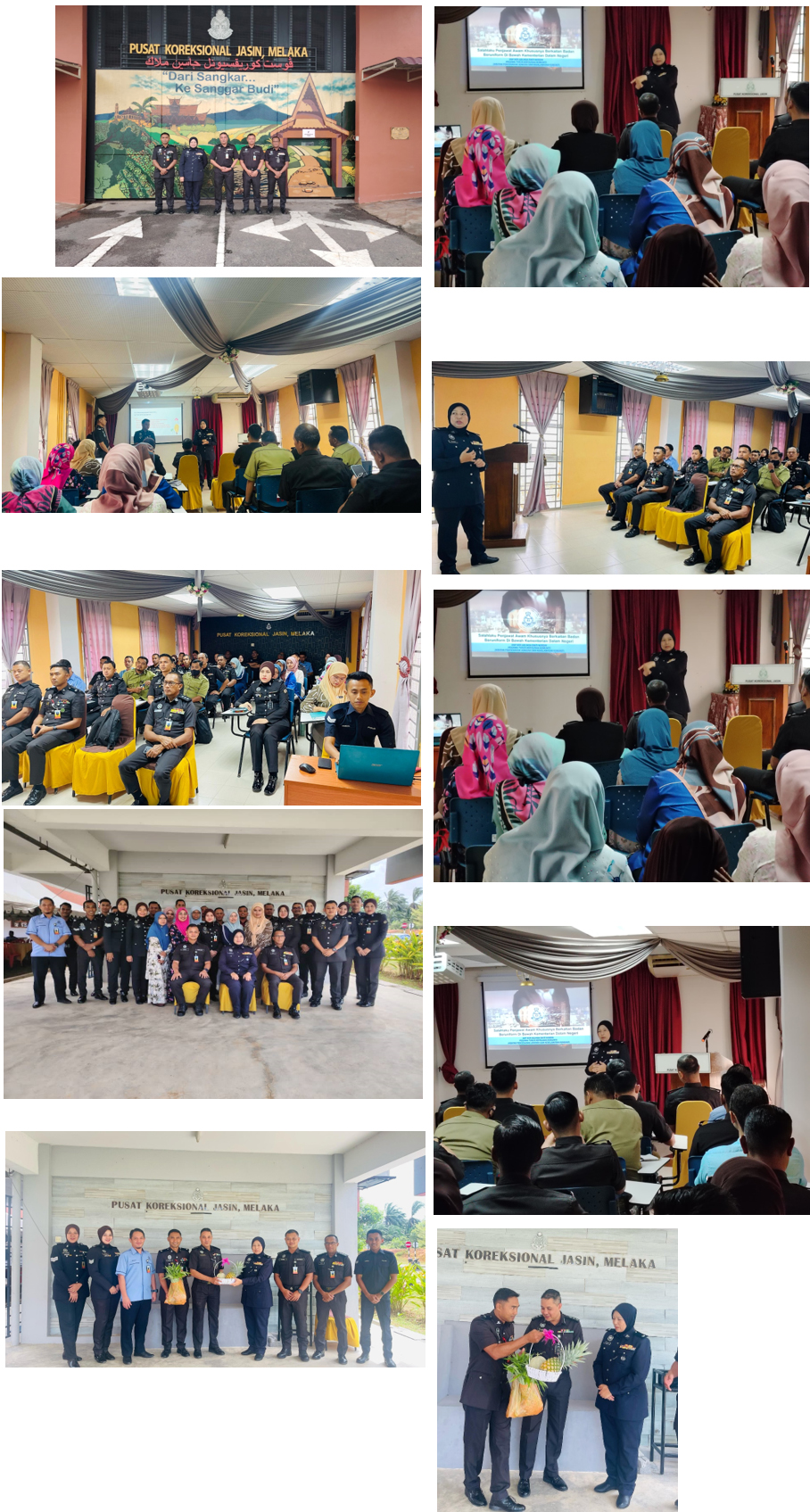 Pada 26 Februari 2025 (Rabu), Pusat Koreksional Jasin, Melaka telah mengadakan Seminar Integriti bertajuk “KAJIAN KES INTEGRITI DI KALANGAN PENJAWAT AWAM”. Kursus telah diadakan di bilik Seminar Orkid dan dikendalikan oleh Timbalan Ketua Polis Daerah Jasin, iaitu DSP Nor Azlinda binti Nordin. Program ini melibatkan seramai (40) orang peserta, diketuai oleh PKP Shaharudin bin Ahmad, TPP Razrin Hamidi bin Abdul Razak, TPP Asrul Effandy bin Abdullah, Dr. Mohd Mahdzan bin Mazelan, pegawai kanan, anggota lain-lain pangkat dan kakitangan awam daripada seluruh institusi penjara negeri Melaka. Penyelaras program ialah INSP. Raffi bin Tuminoh, Ketua Unit Latihan Pusat Koreksional Jasin.