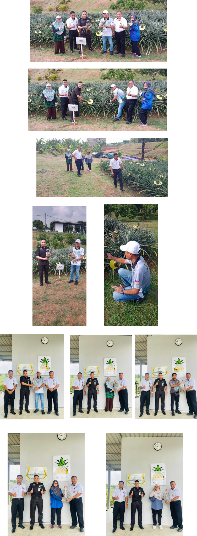 Pada 3 Oktober 2024 (Jumaat), Pengarah MARDI Negeri Melaka iaitu Tuan Mohd Hairy Azwan bin Mohd Bakhtiar bersama 4 orang pegawai penyelidik kanan MARDI telah melawat Pusat Koreksional Jasin. Tujuan lawatan adalah bagi melihat hasil tanaman percubaan hibrid baharu nanas MS16 yang ditanam di Pusat Koreksional Jasin dimana sulur nanas atau benih telah disumbangkan oleh pihak MARDI sebelum ini. Hasil tinjauan mendapati, Nanas M16 yang telah matang hidup dengan subur, mempunyai rasa yang manis dan tahan terhadap serangan penyakit. Tanaman diusahakan oleh anggota penjara yang terlatih dalam bidang penanaman nanas iaitu SJN Zupkawerussapkdanur bin Safee dan anggota lain. Usaha ini juga dapat memberi ilmu kemahiran penanaman nanas kepada Orang Diselia (ODS) yang mengikuti program pemulihan di Pusat Koreksional Jasin. Lawatan Pengarah MARDI disambut oleh PKP Shaharudin bin Ahmad, Pengarah Pusat Koreksional Jasin, PP Mohd Rehan bin Khamis, Timbalan Pengarah, TPP Razrin Hamidi bin Abdul Razak dan anggota yang mengusahakan tanaman. Pengurusan Pusat Koreksional Jasin merakamkan penghargaan kepada pihak MARDI yang memberi sumbangan dan tunjuk ajar dan semua warga kerja Pusat Koreksional Jasin yang memberi komitmen dalam semua program penanaman yang telah dirancang secara sistematik.