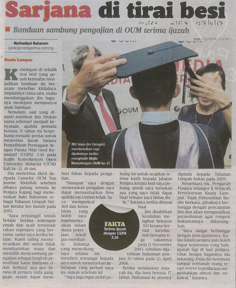 Sarjana Di Tirai Besi - Banduan Sambung Pengajian di OUM Terima Ijazah