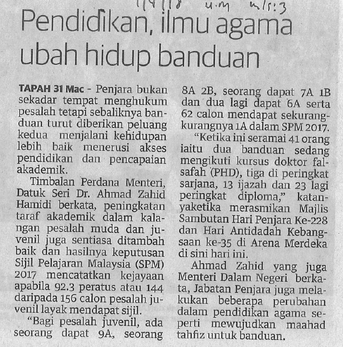 Pendidikan, Ilmu Agama Ubah Hidup Banduan