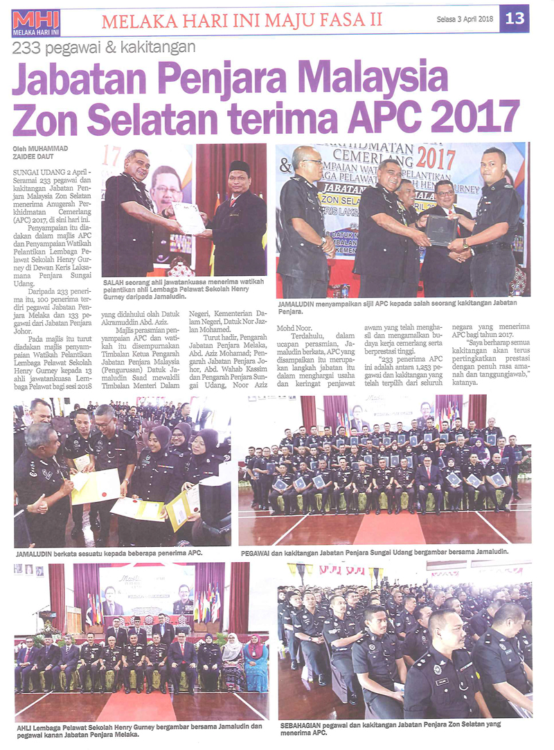 Jabatan Penjara Malaysia Zon Selatan Terima APC 2017