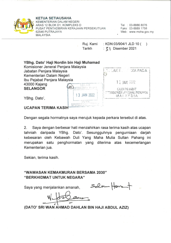 Ucapan Terima Kasih - Kementerian Dalam Negeri